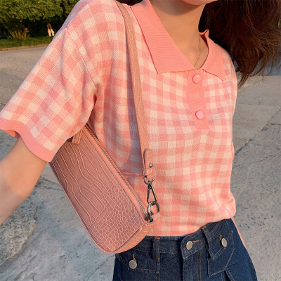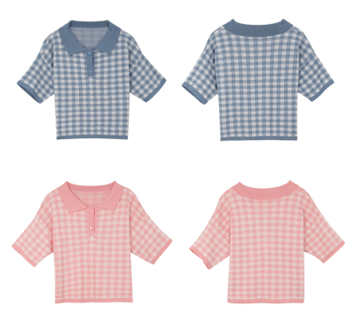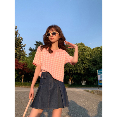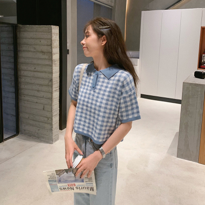 Plaid knitwear women's loose Korean net red short sleeve T-shirt slim short top