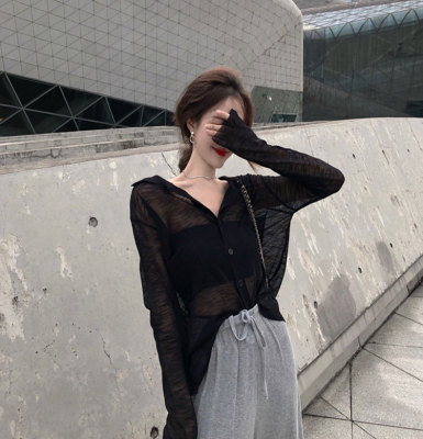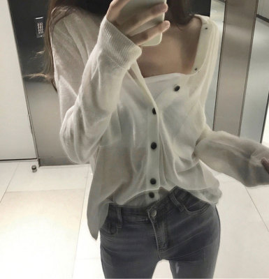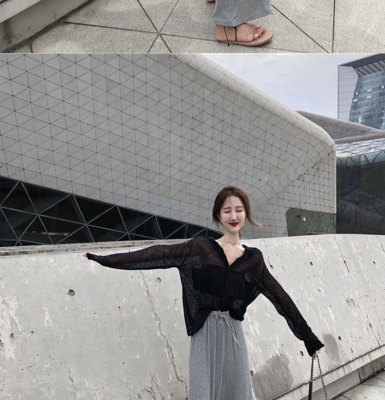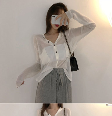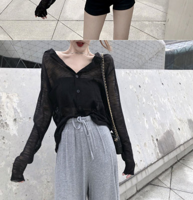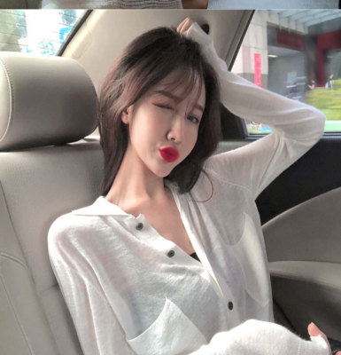 Guantu ice silk knitted sweater women's cardigan summer collar loose and versatile air conditioning shirt thin sunscreen shirt shawl