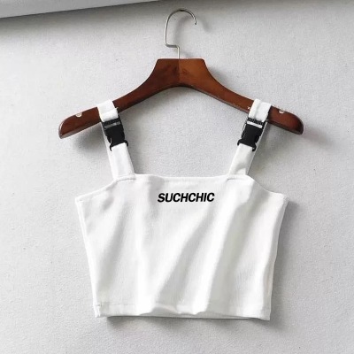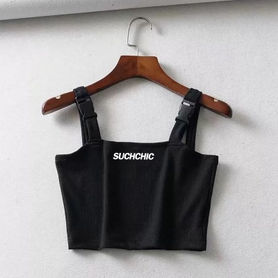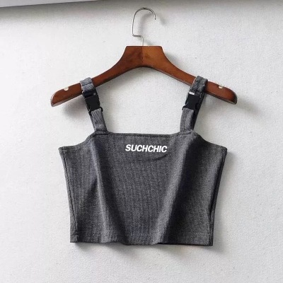 European and American thread cotton letter embroidered suspender vest women's spring and summer shorts top slim suspender women's fashion