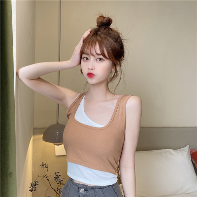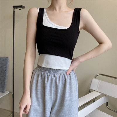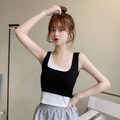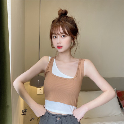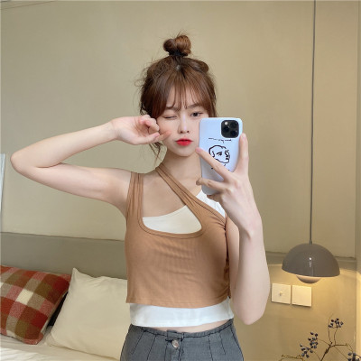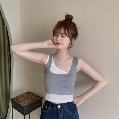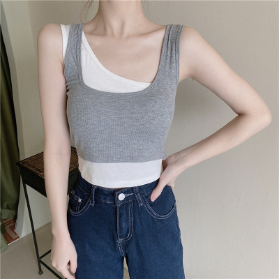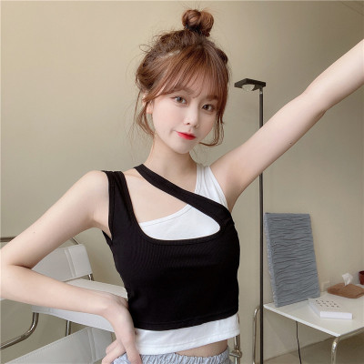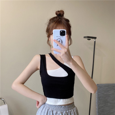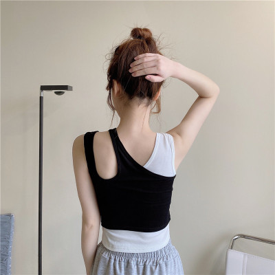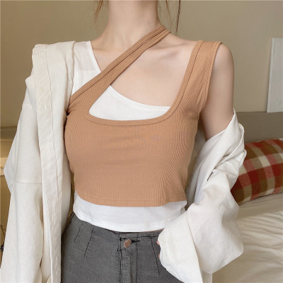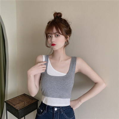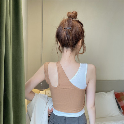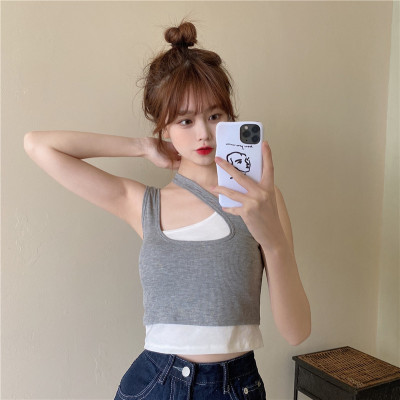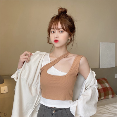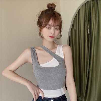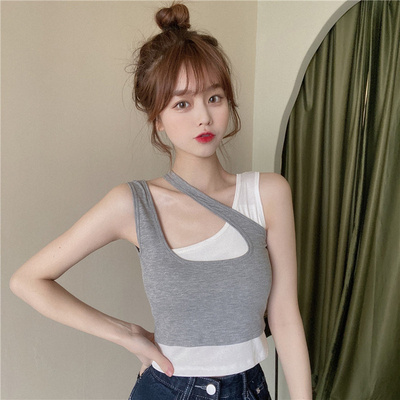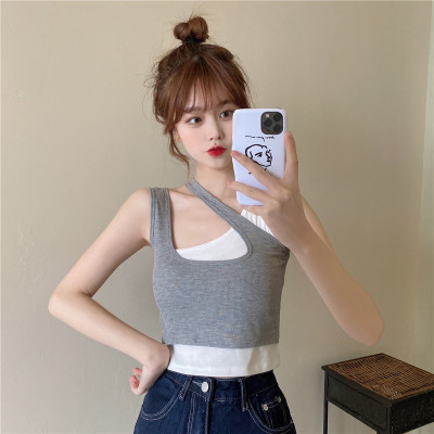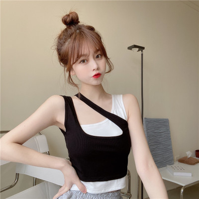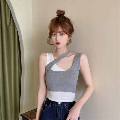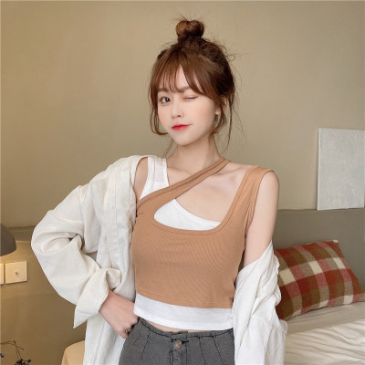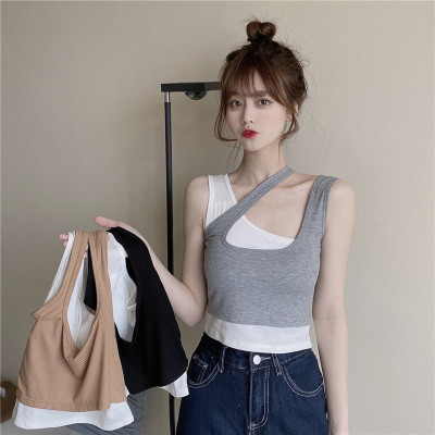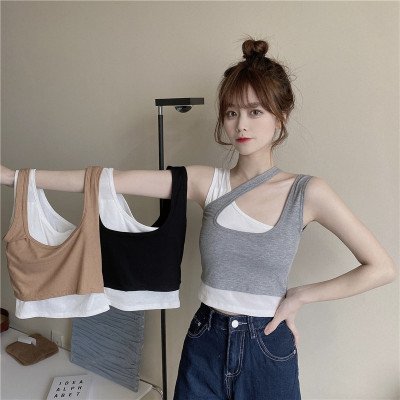 Spring and summer new fake two-piece top irregular slim with bottom vest and suspender for women