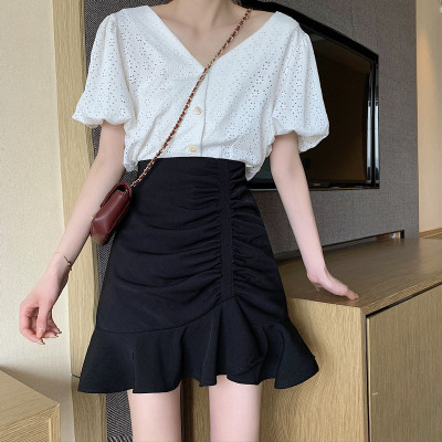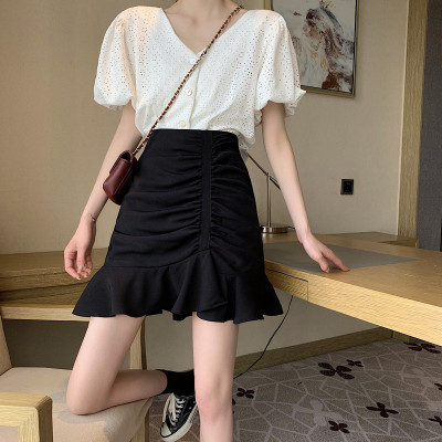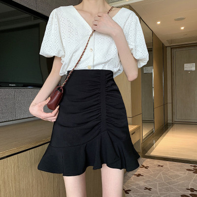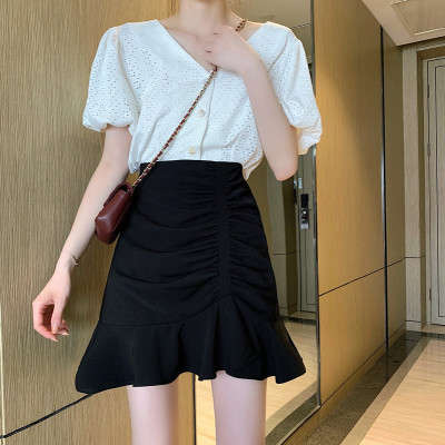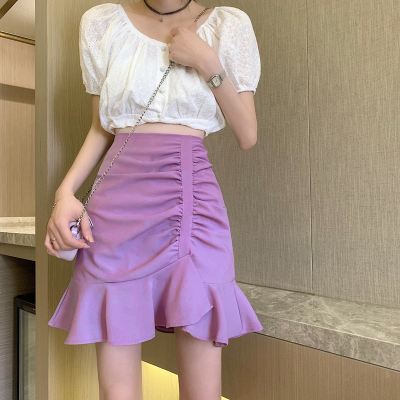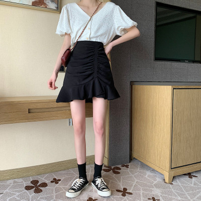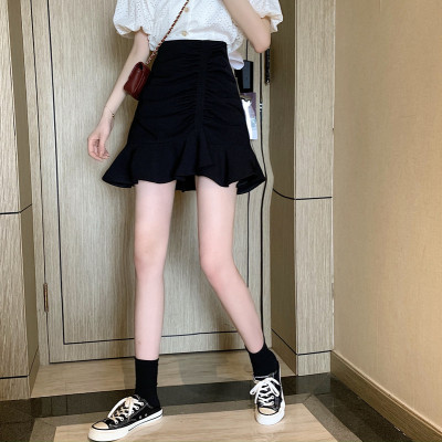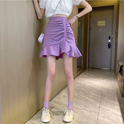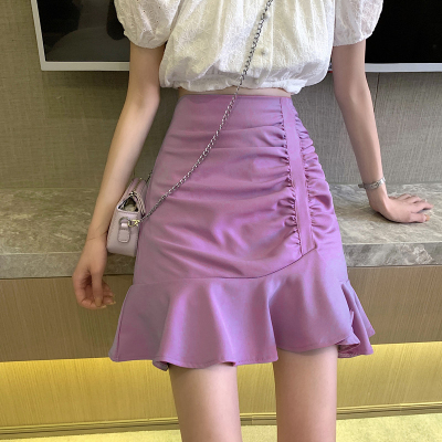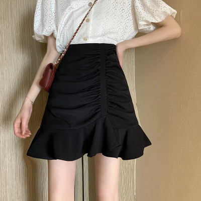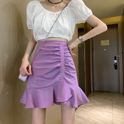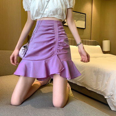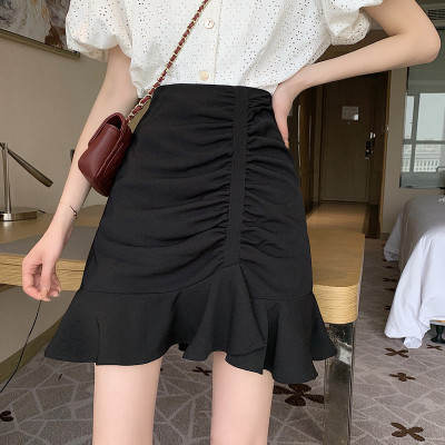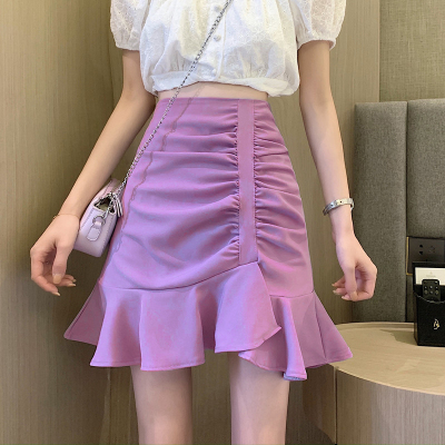 Korean high waist slim irregular Ruffle pleated fishtail skirt