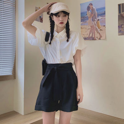 Real price, versatile bubble sleeve shirt + two piece design wide leg shorts
