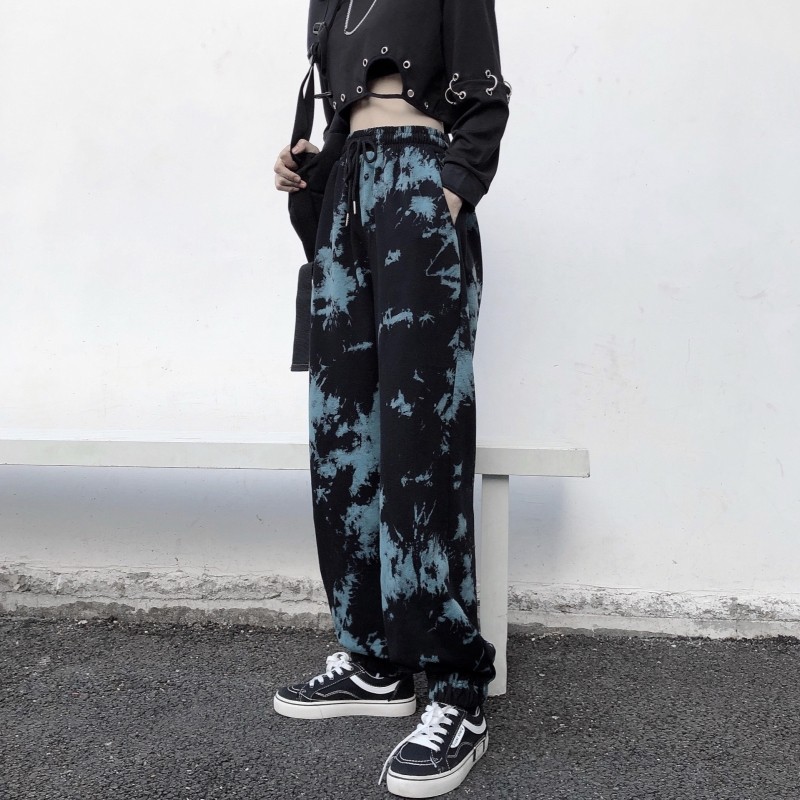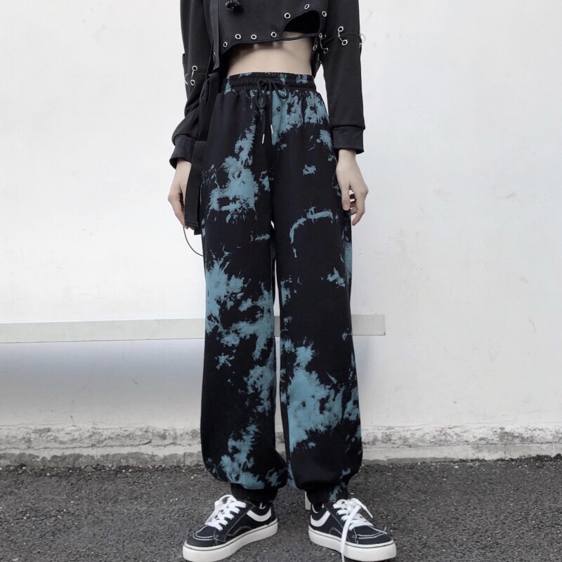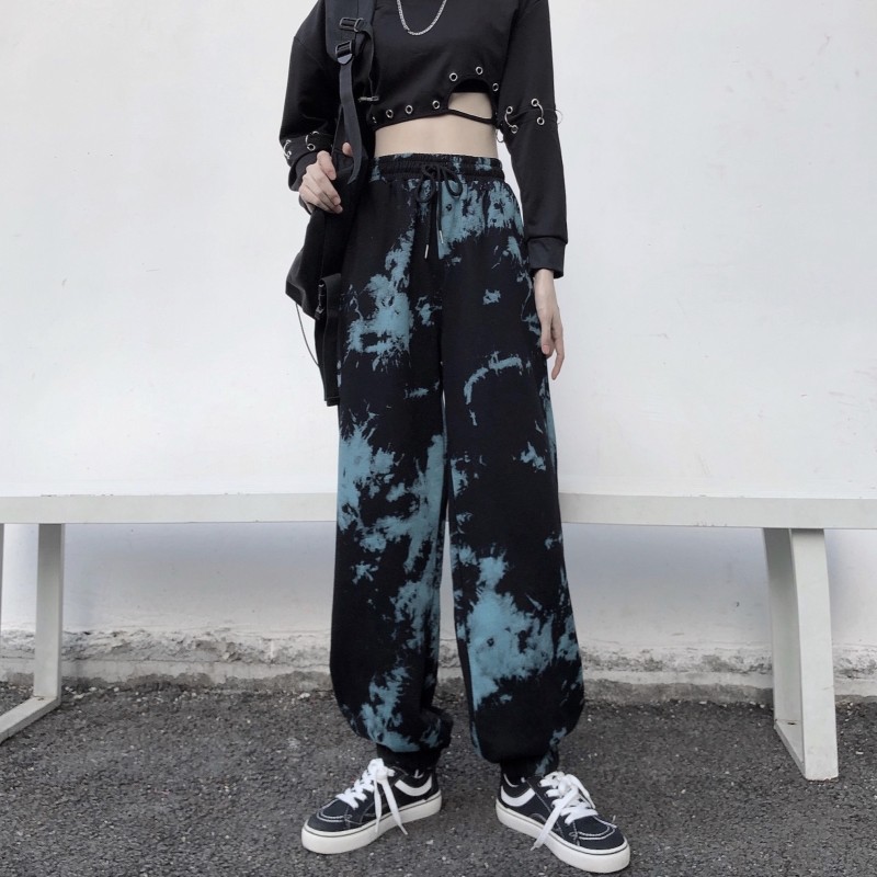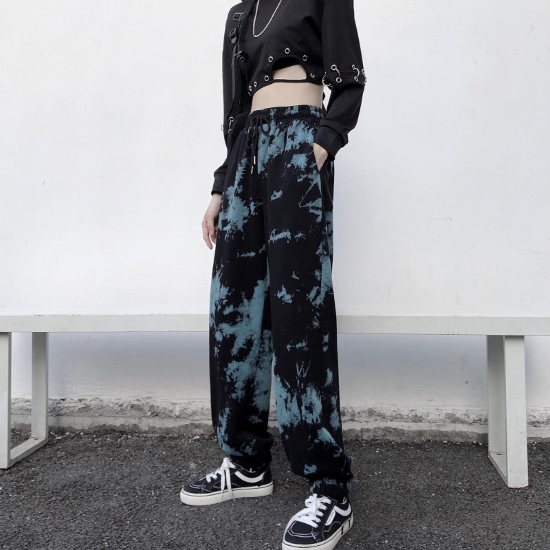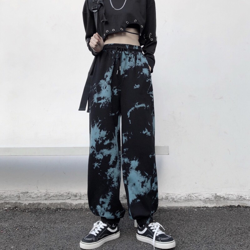 Real shot fish scale cotton tie dyed sports legged pants Korean Harem Pants casual women's fashion fried Street pants