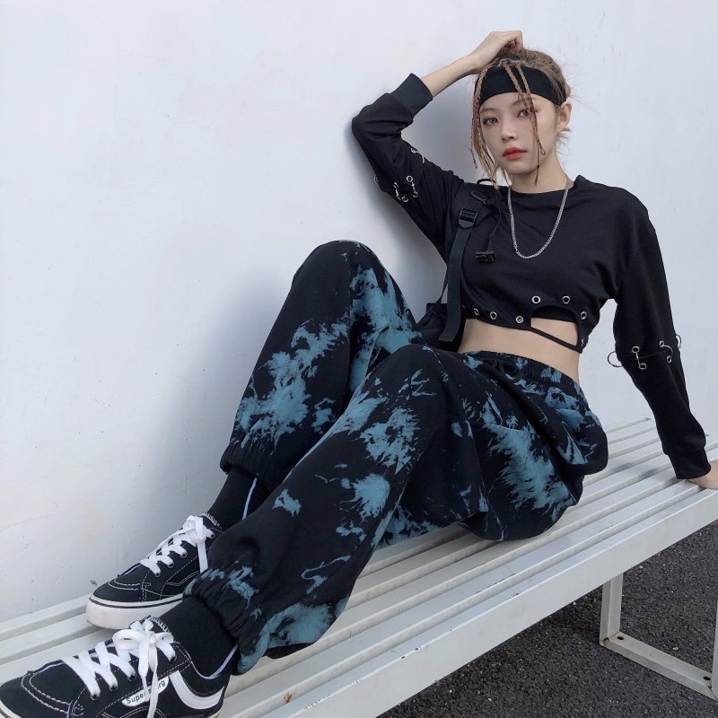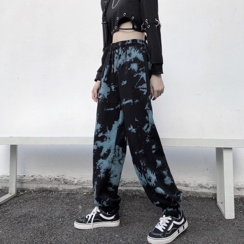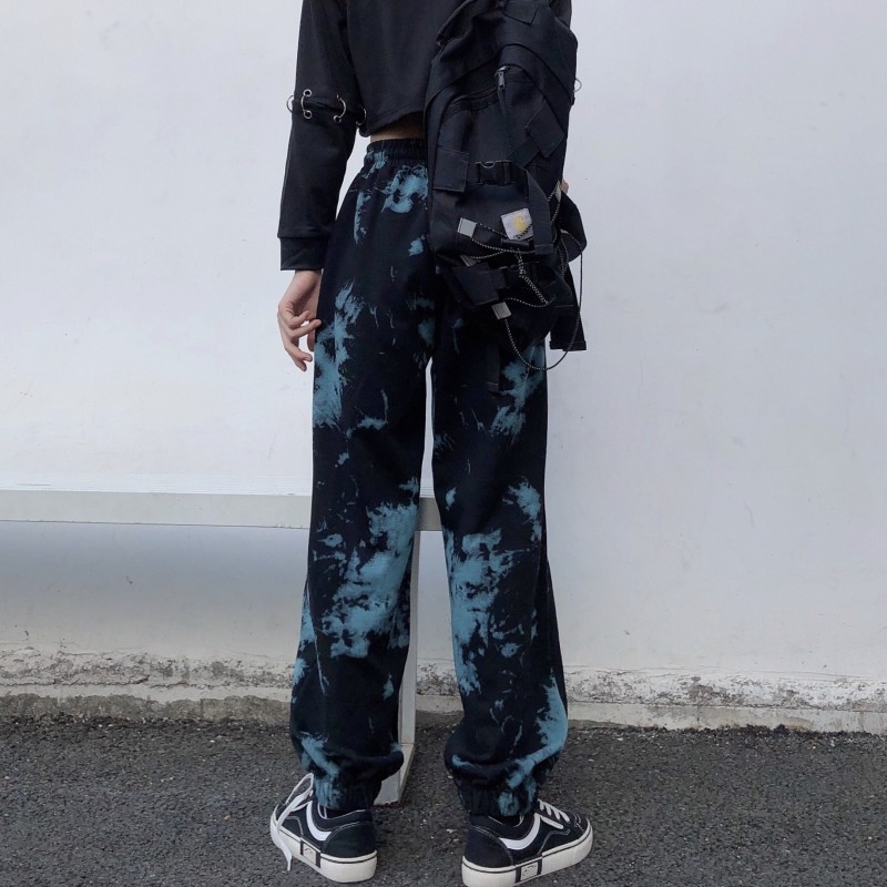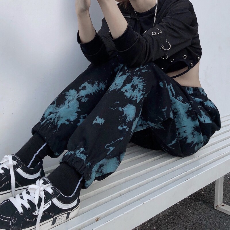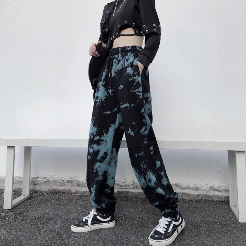 Real shot fish scale cotton tie dyed sports legged pants Korean Harem Pants casual women's fashion fried Street pants