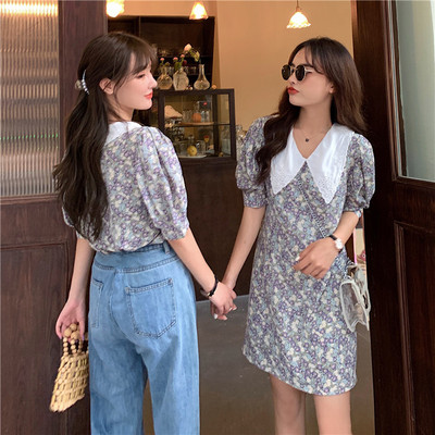Real price real shot 2021 spring and summer new short top femininity floral dress Fairy