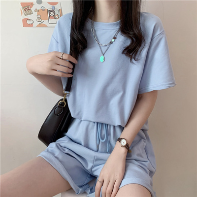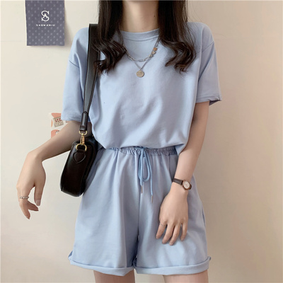 Real price real shot ~ New Korean candy casual suit T-shirt and shorts two piece set