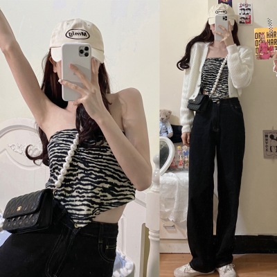 Real price bra with waistcoat off shoulder sexy short double layer sleeveless breast wrapped sweet spicy one shoulder top