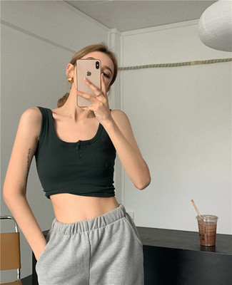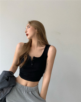 Real price basic four color comfortable three button solid color suspender vest T-shirt