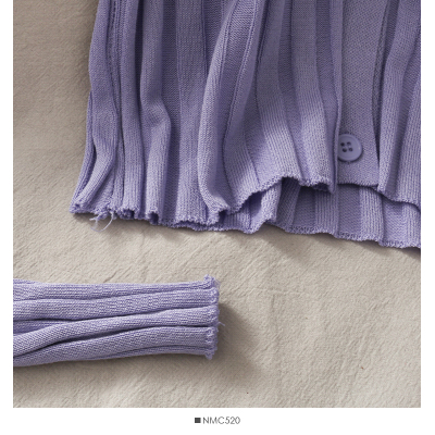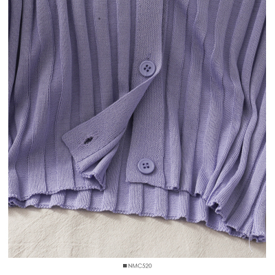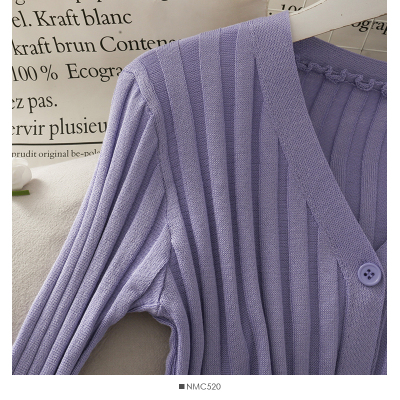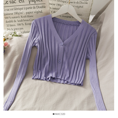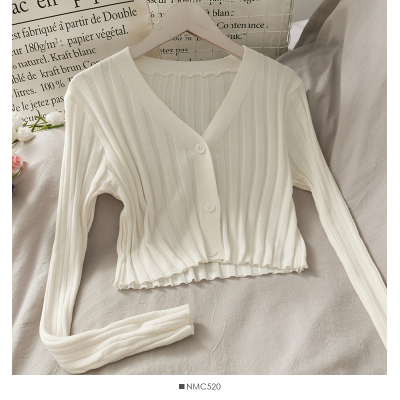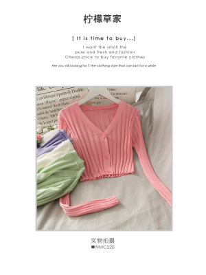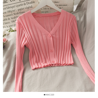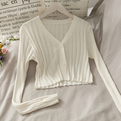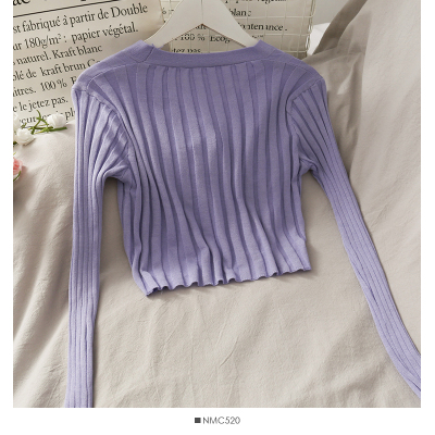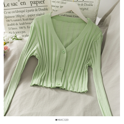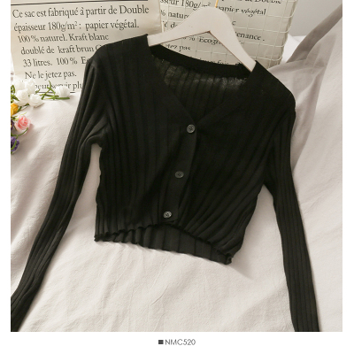 Korean Short slim three grain button solid color sweater top women's summer vertical stripe long sleeve cardigan sweater