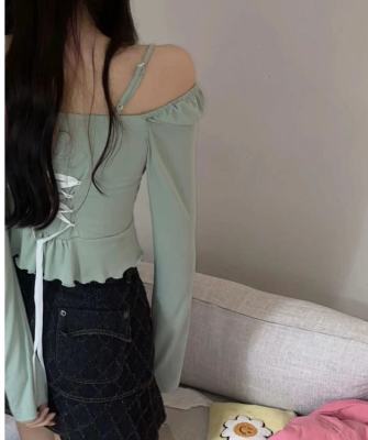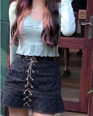 Real treasure no collision special washed rhombic bandage denim skirt + green real clothes
