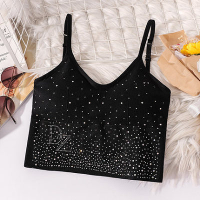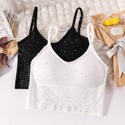Bright diamond back bra with diamond underwear suit women's small breasts gather to flirt