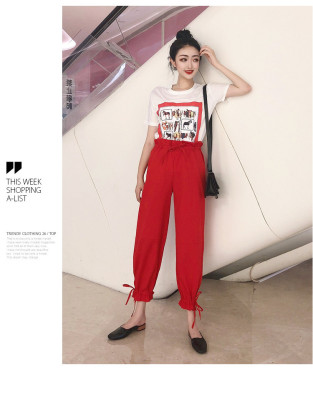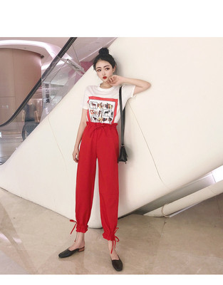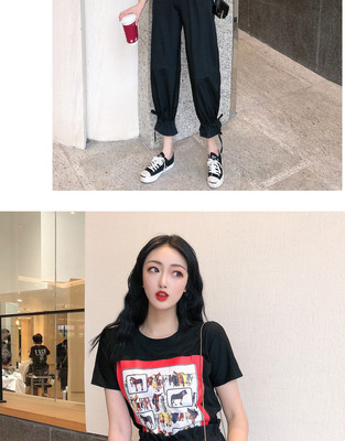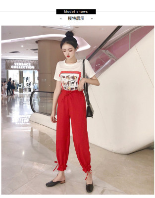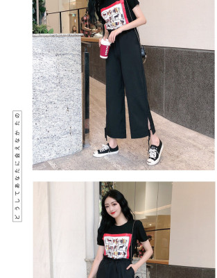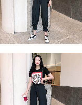 Real shooting leisure sports suit short sleeve T-shirt + 9-point pants slim Leggings two-piece suit