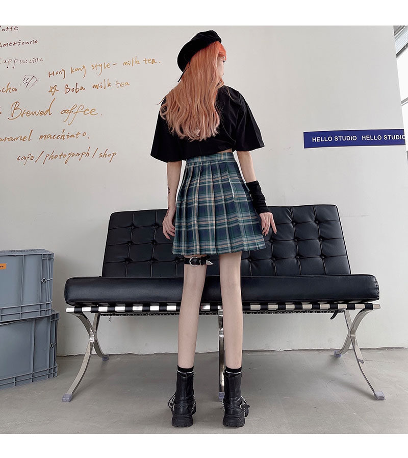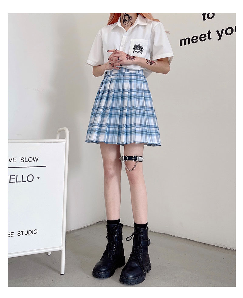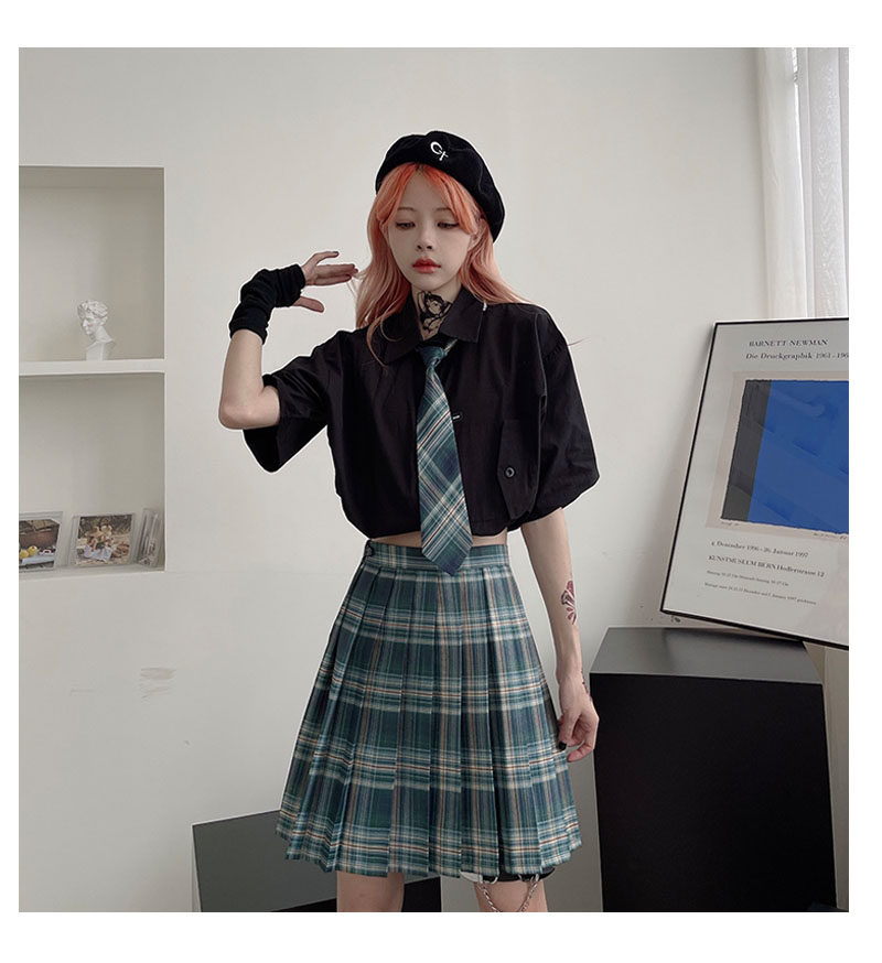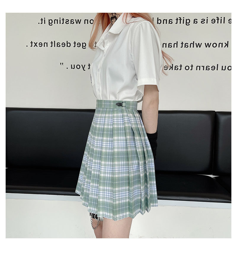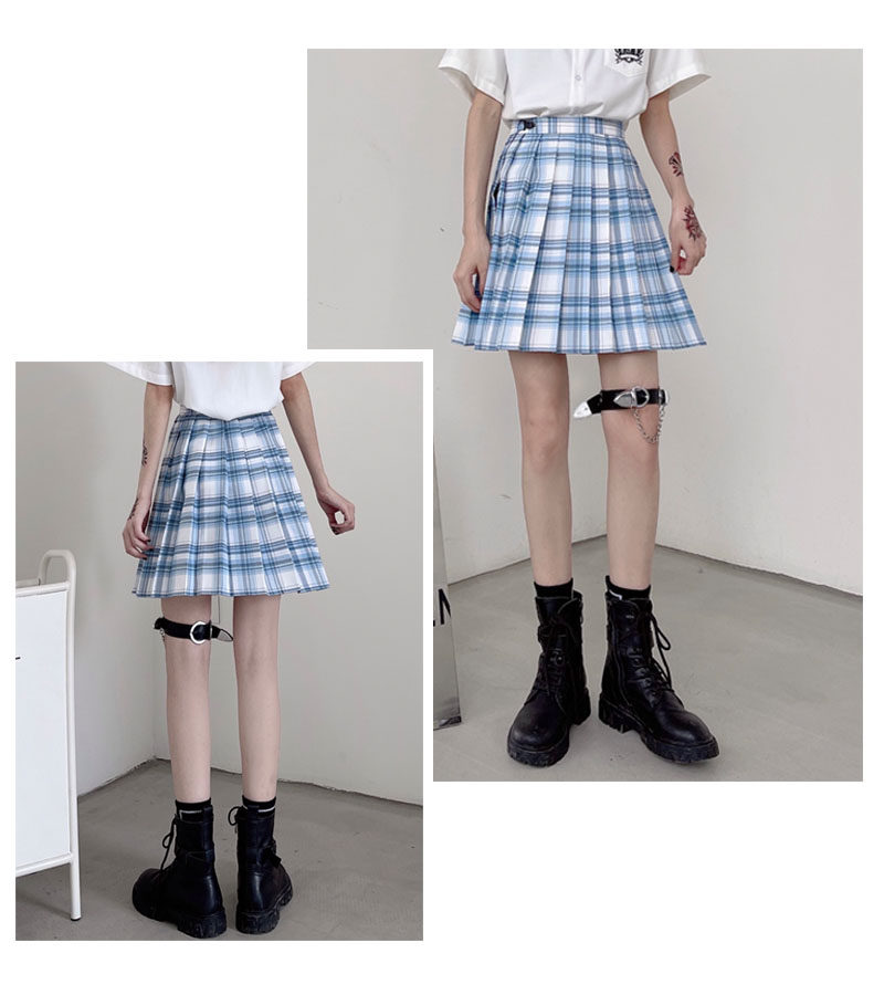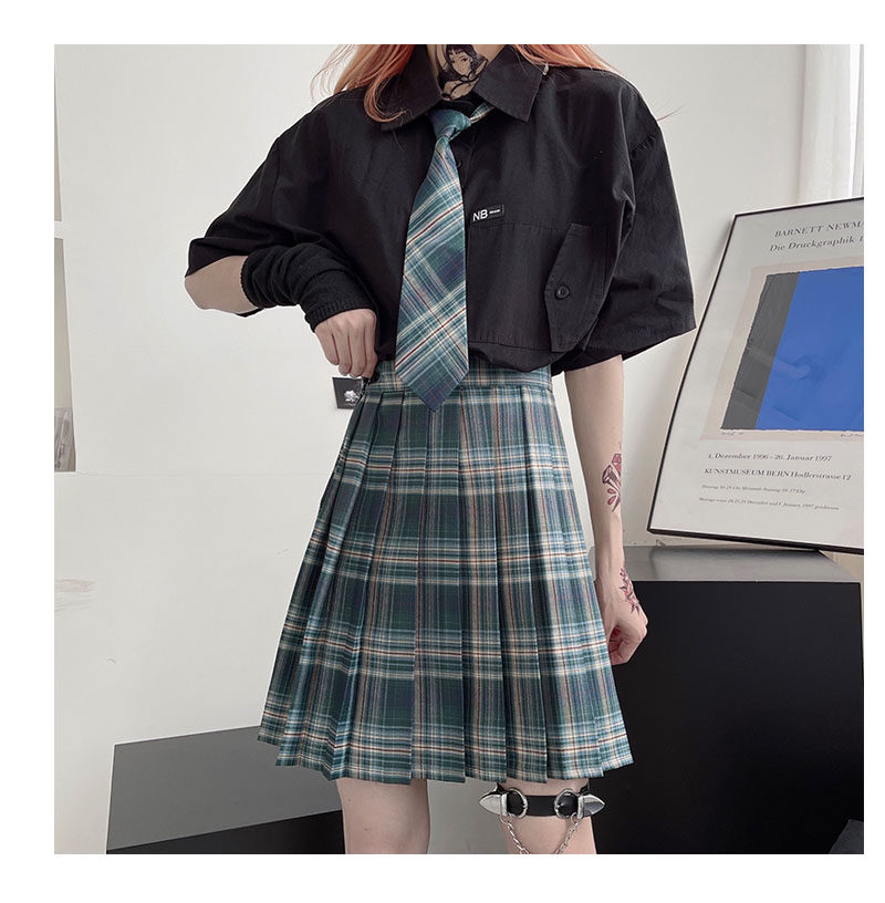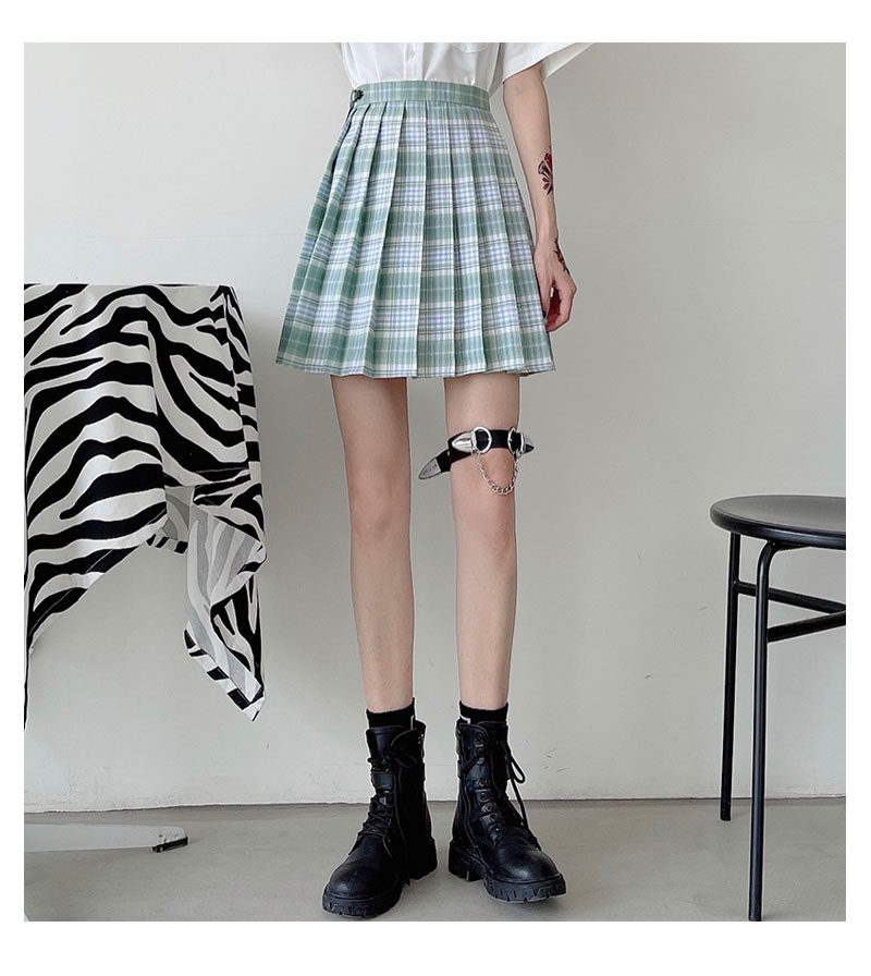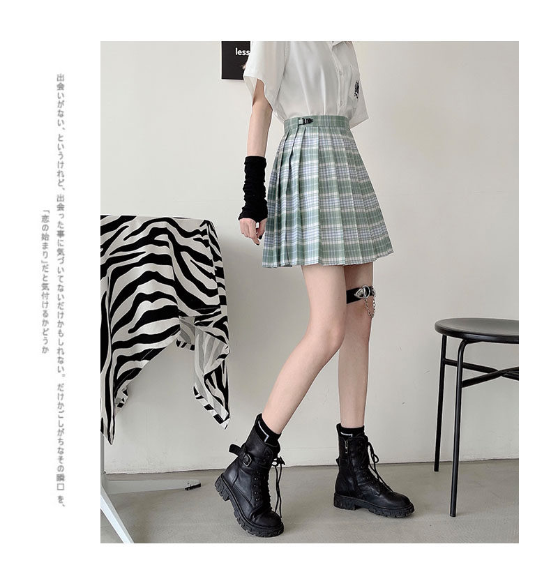 Real picture lattice skirt suit uniform high waist and thin lattice pleated skirt short skirt student girl Xia