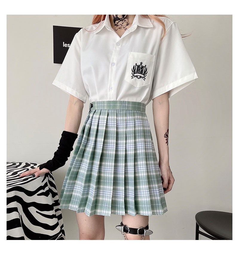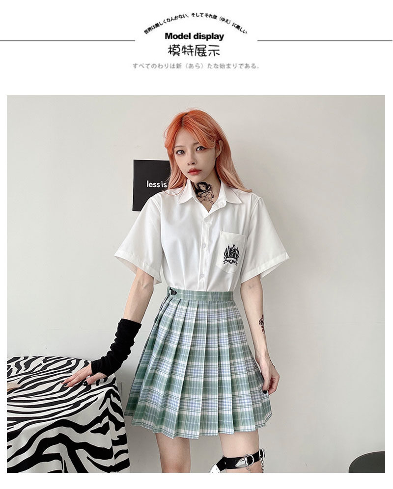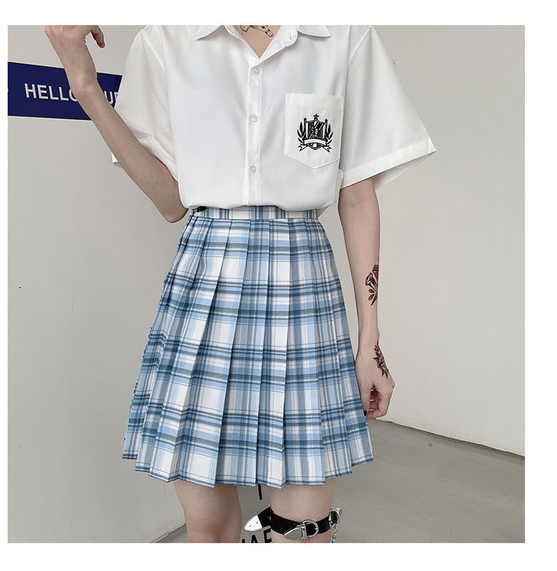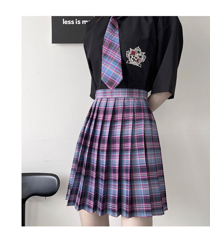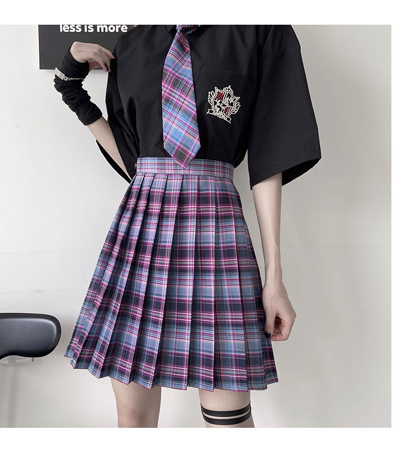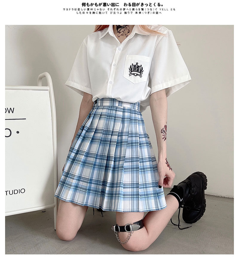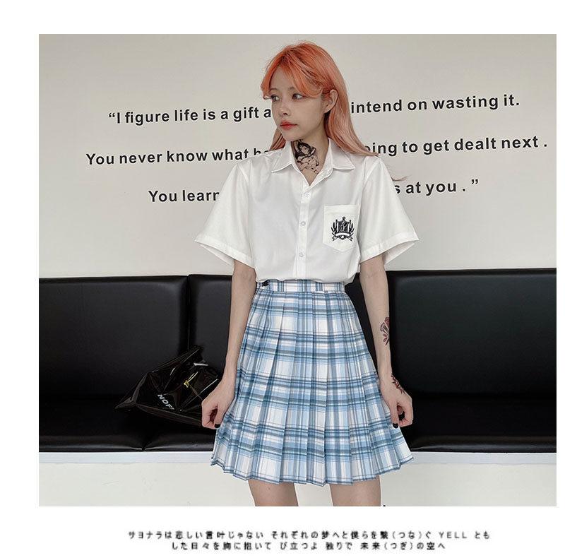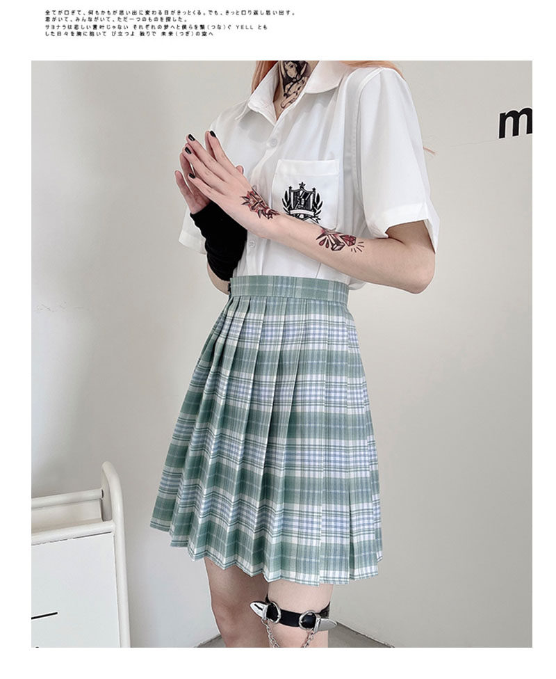 Real picture lattice skirt suit uniform high waist and thin lattice pleated skirt short skirt student girl Xia