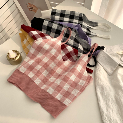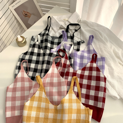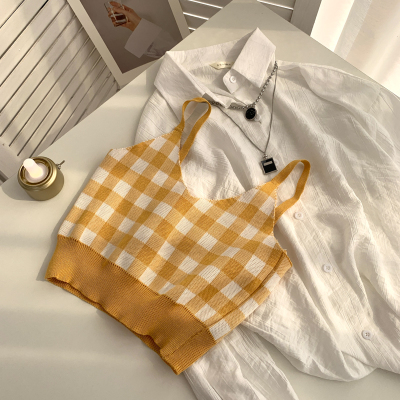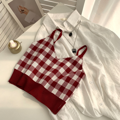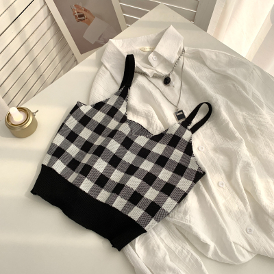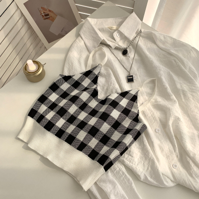 Plaid collar waistcoat for women in spring and summer