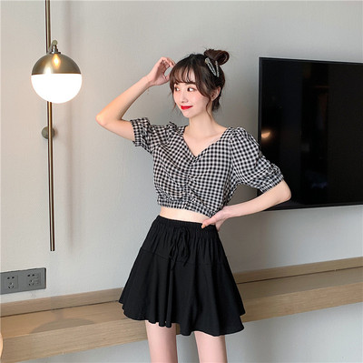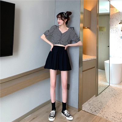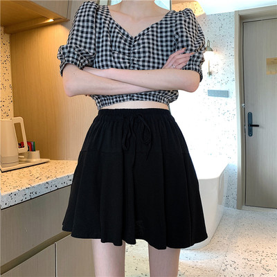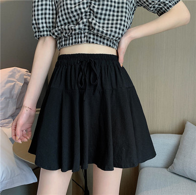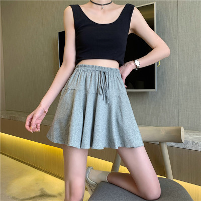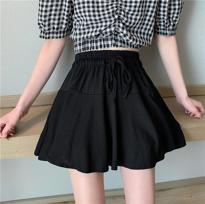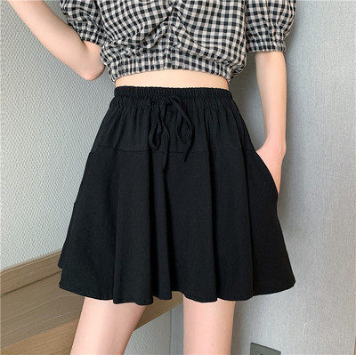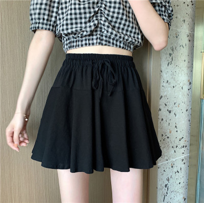 Real price elastic waist versatile skirt summer Korean high waist slim short skirt with drawstring trouser skirt