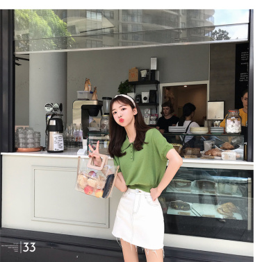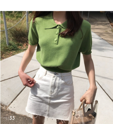 New summer candy color temperament collar single breasted knitted bottomed shirt with versatile Korean top
