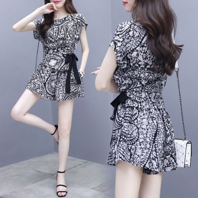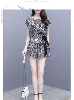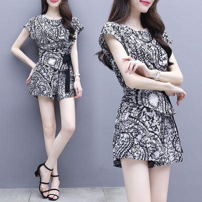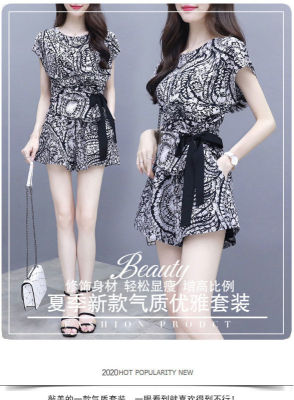 Women's new fashion Korean loose top with foreign style Shorts Set shows thin temperament two piece set