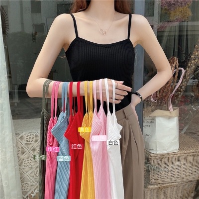 Real price real shot Korean versatile slim knit suspender vest suspender top