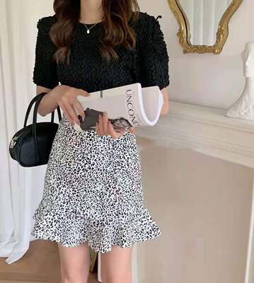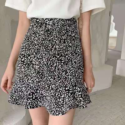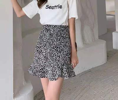 Design sense skirt new high waist wave point buttock skirt spring thin fishtail floral skirt