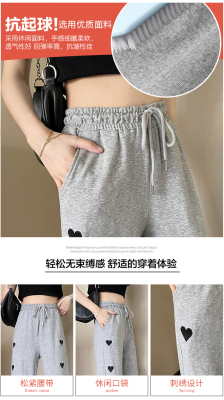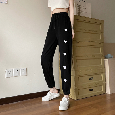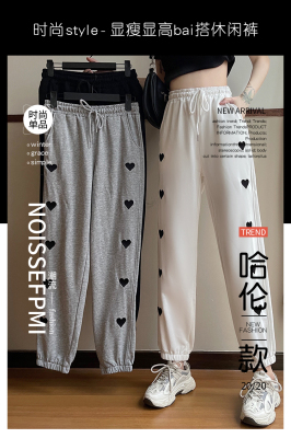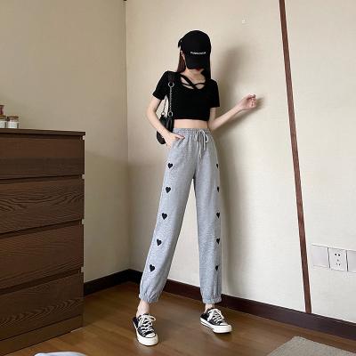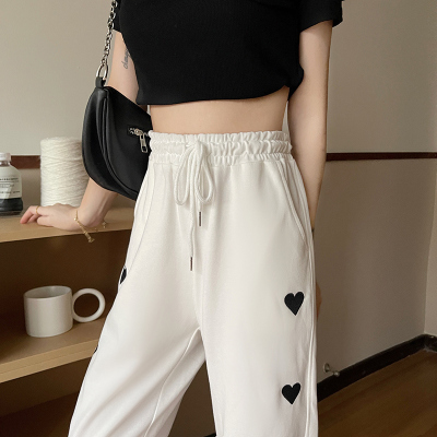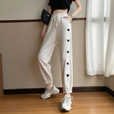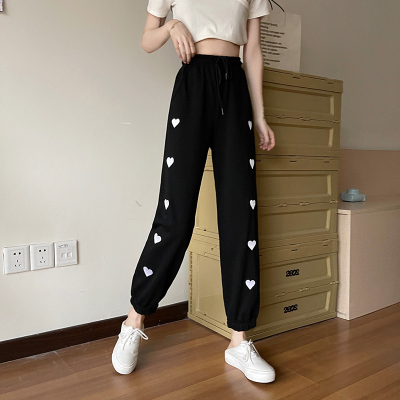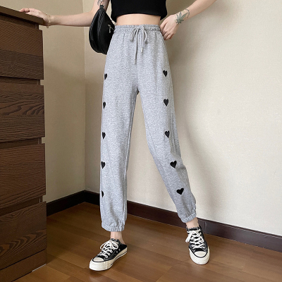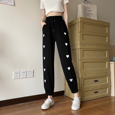 Real photo embroidery love Harem Pants high waist sports pants long pants Korean casual pants women's spring and summer thin