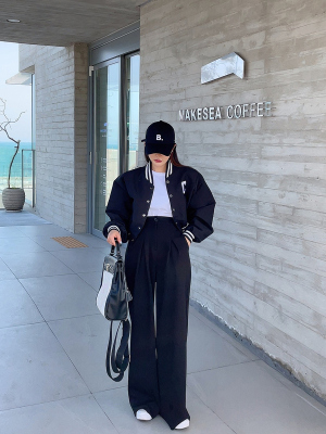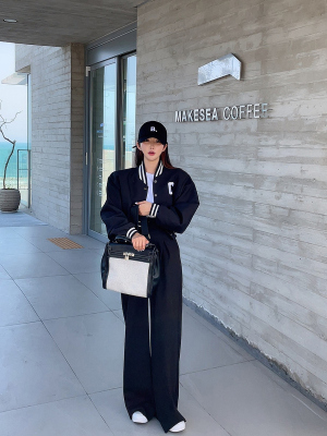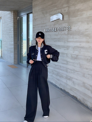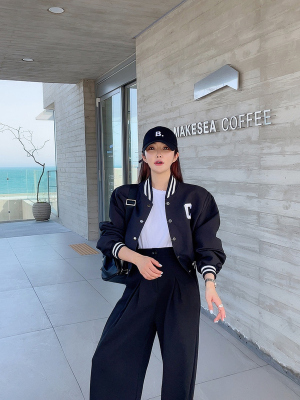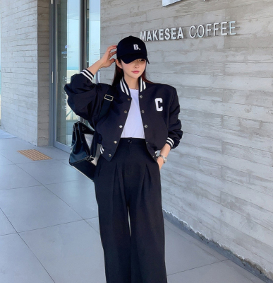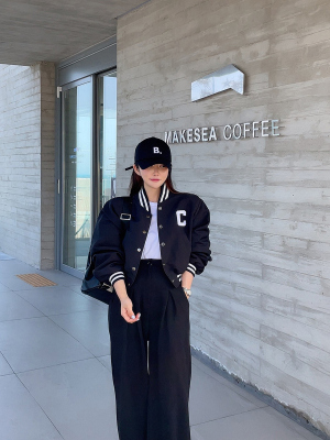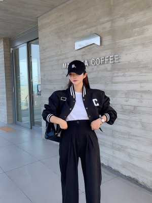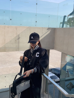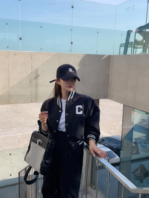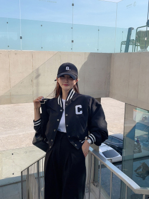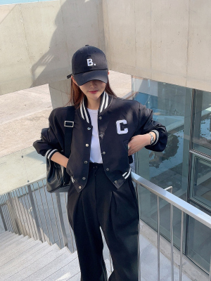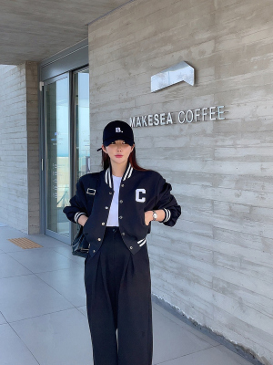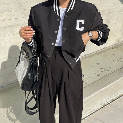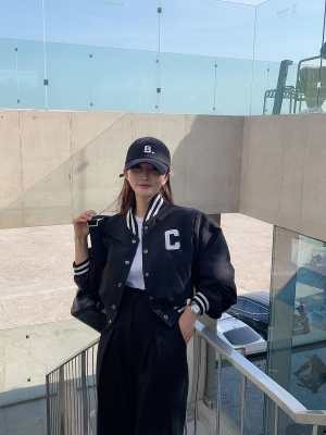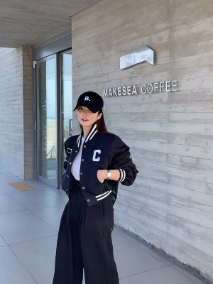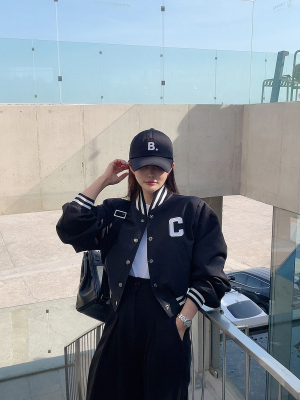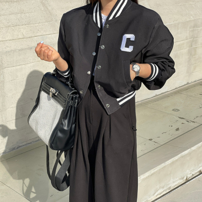 . Original fabric loose c letter short Baseball Jacket Women's casual sweater cardigan jacket