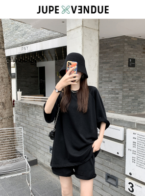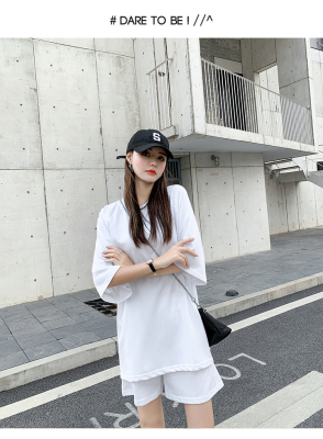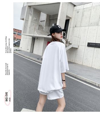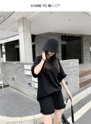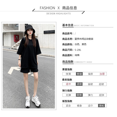 Real shot summer 2021 new solid color loose thin round neck short sleeve T-shirt shorts casual sports suit women's fashion
