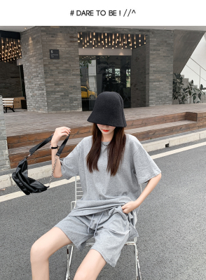 Real shot Korean version 2021 summer new pure cotton loose thin suit solid round neck T-shirt shorts two piece women's suit