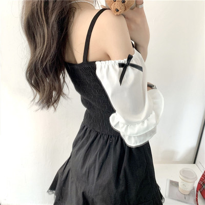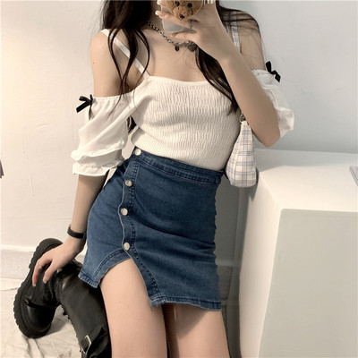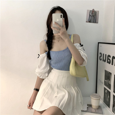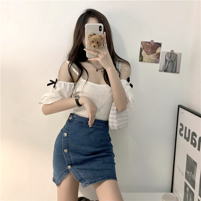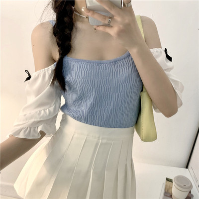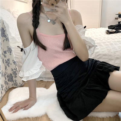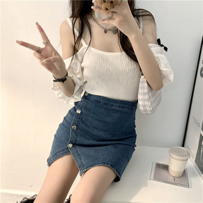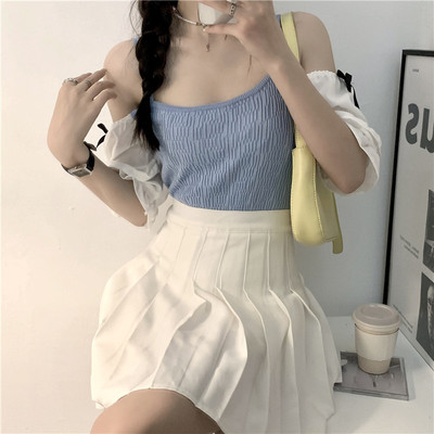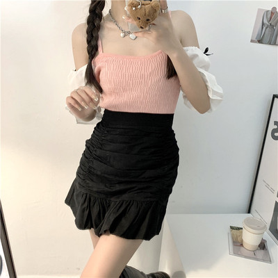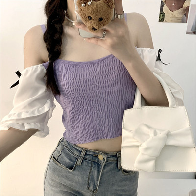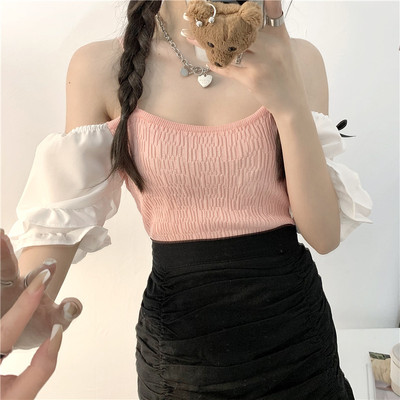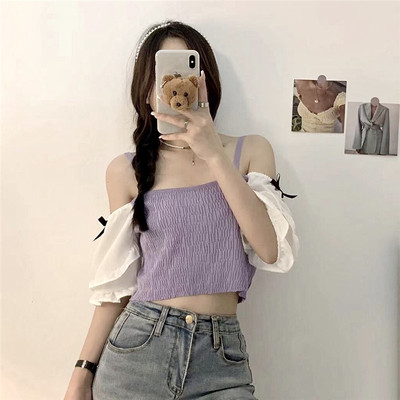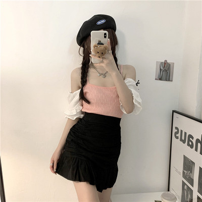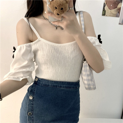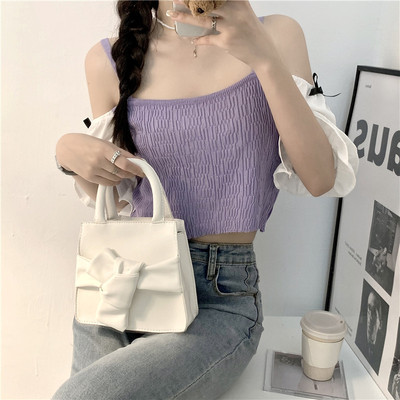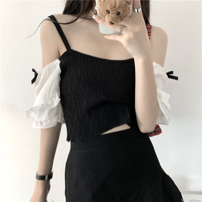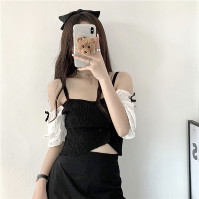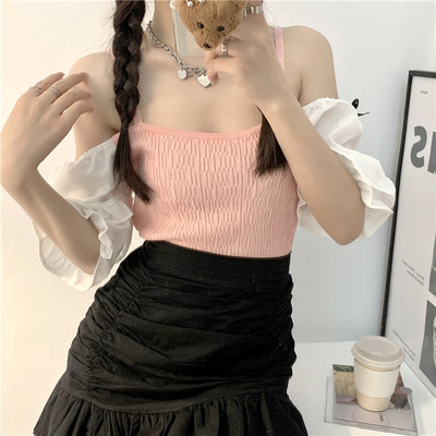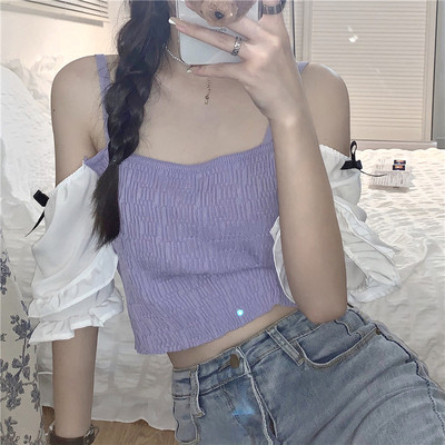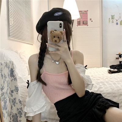 Real shot real price 2021 summer new careful machine exposed clavicle shoulder tight short suspender top