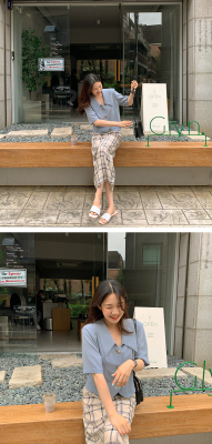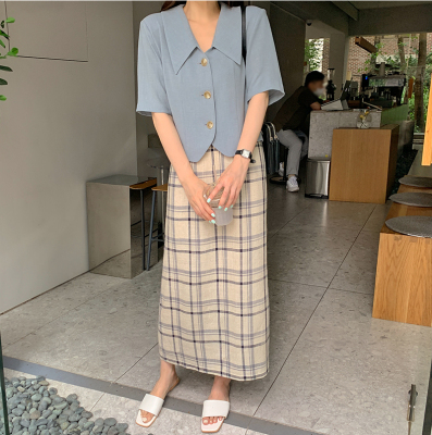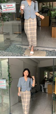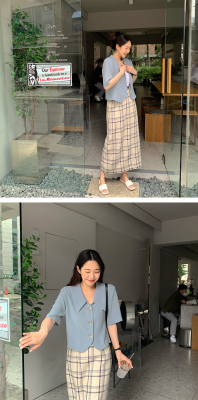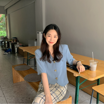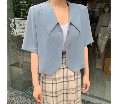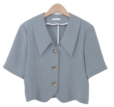 Ghost horse is a girl's haze blue square neck short suit and short sleeve coat
