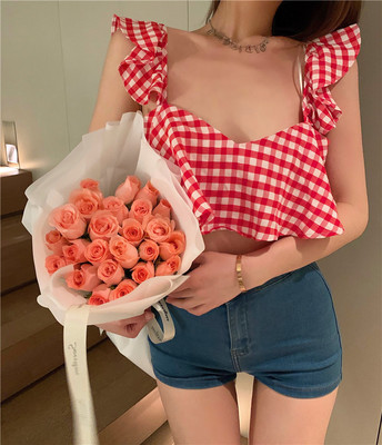 Real shot Plaid back honeycomb elastic design suspender jacket