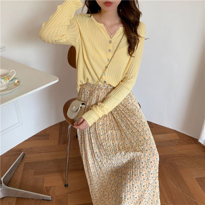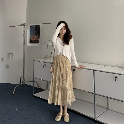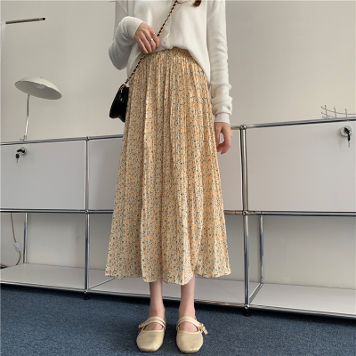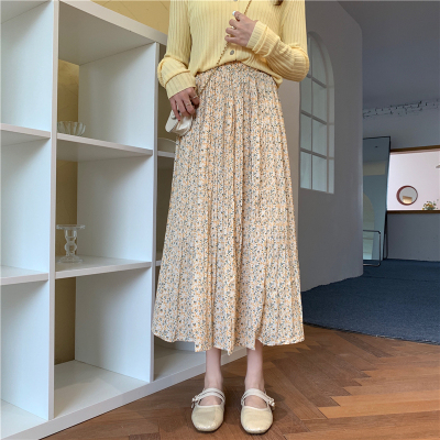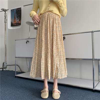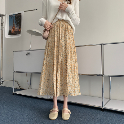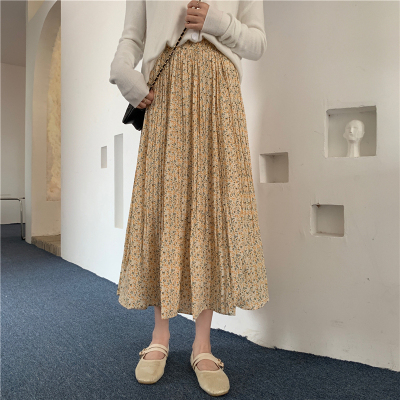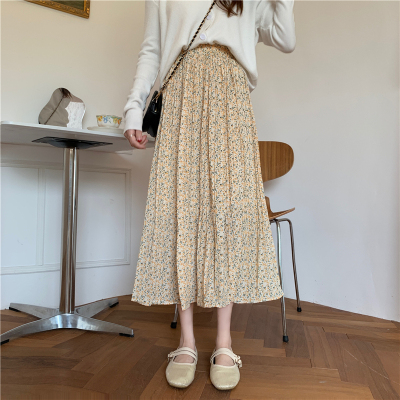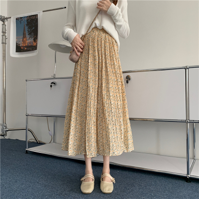 Real price ~ summer 2021 Korean high waist and thin pleated floral skirt medium length A-line skirt for women