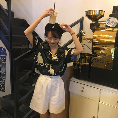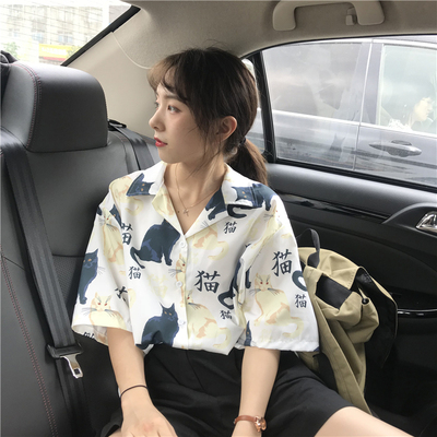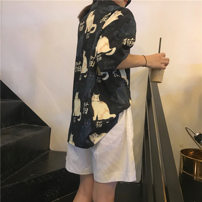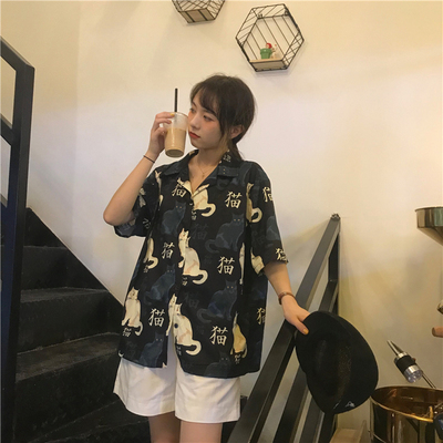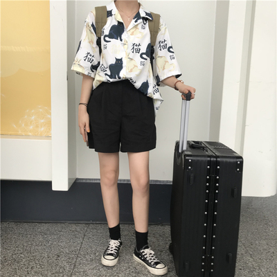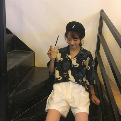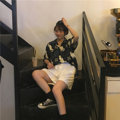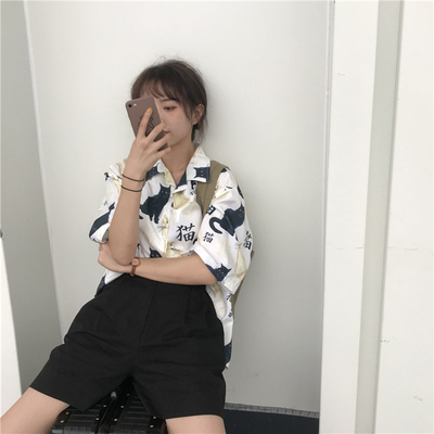 Real price real shot ~ New Korean printed cat shirt + Shorts Set