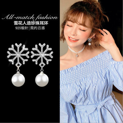 S925 silver needle Korean female Earrings students indifference Earrings full of diamond snowflake Pearl Earrings