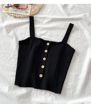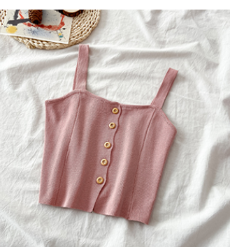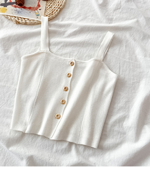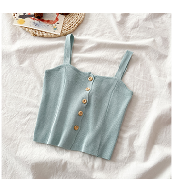 Summer 2021 new Korean chic versatile solid color single breasted small sling shows thin short knitted vest for women