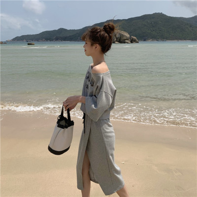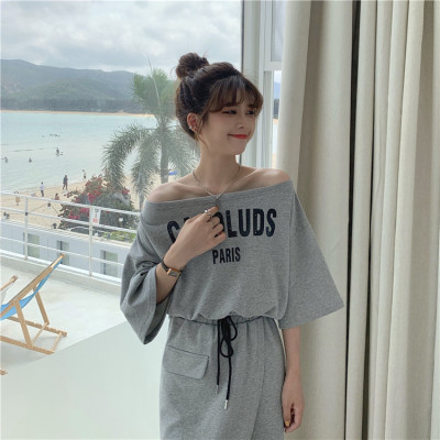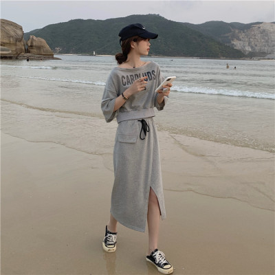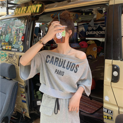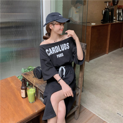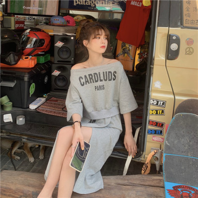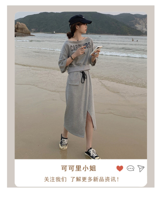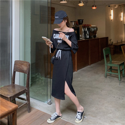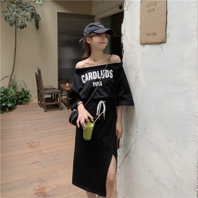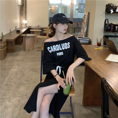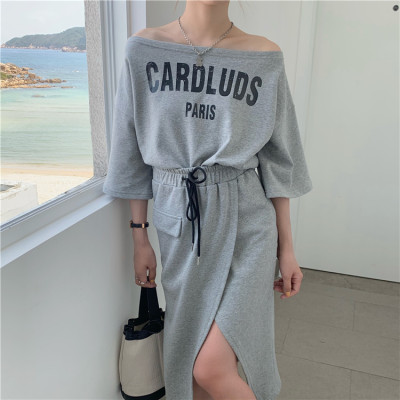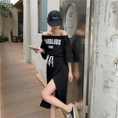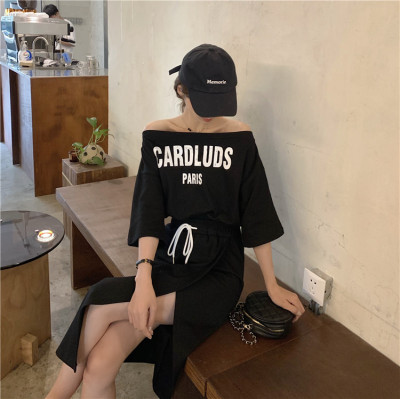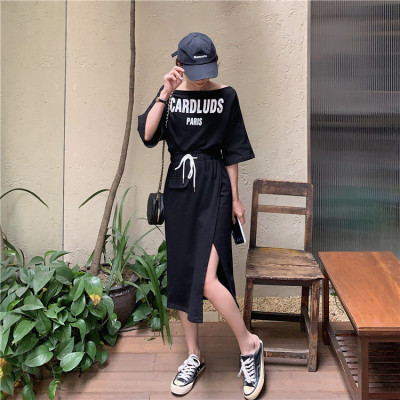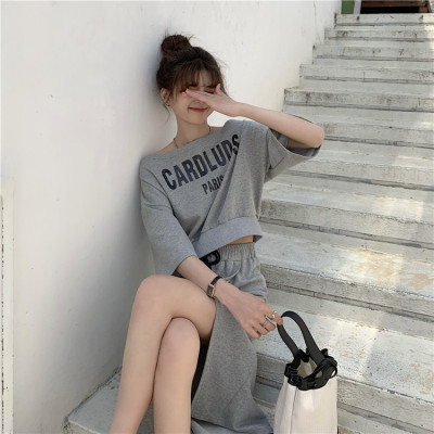 Summer new short letter print T-shirt women's casual split skirt fashion suit