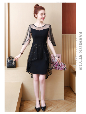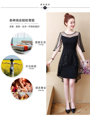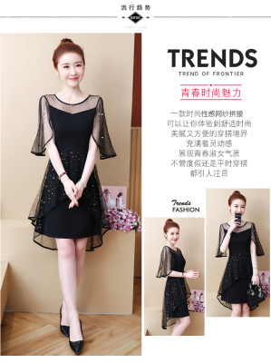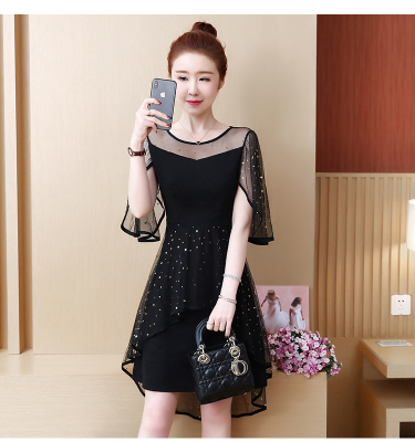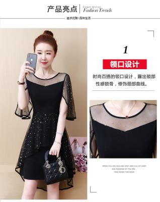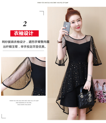 Summer dress fat add fat increase age reduction loose cover belly mesh Chiffon large size dress
