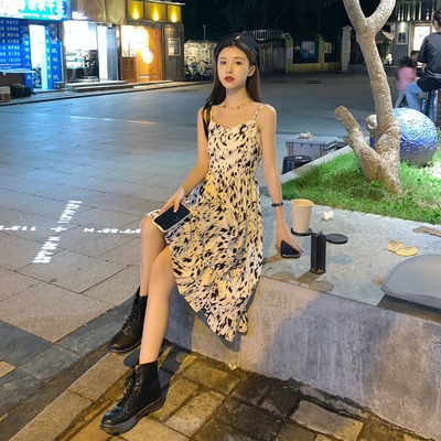 Real price ~ minority French floral suspender dress women's irregular ear edge splash ink skirt