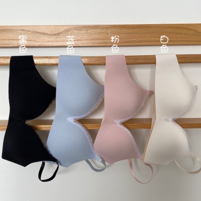 Real shot real price summer solid color Lace Sexy student no trace bra no steel ring gathered small bra underwear girl