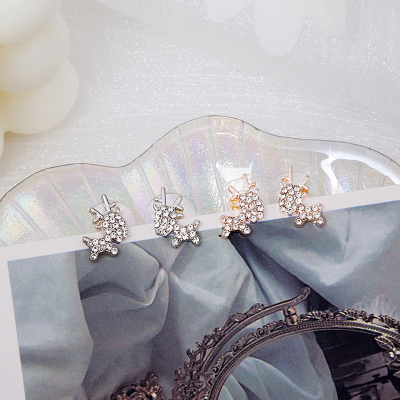 Real shot silver needle inlaid diamond asymmetric elk Earrings sweet and lovely asymmetric cartoon Christmas Earrings