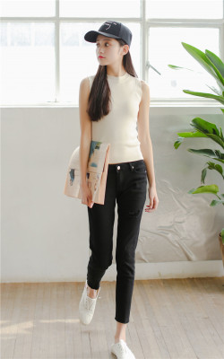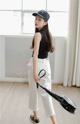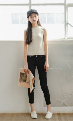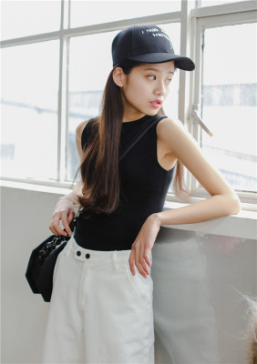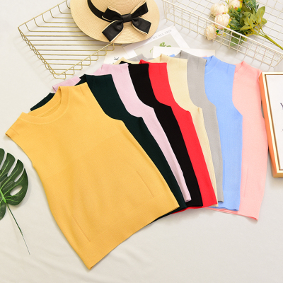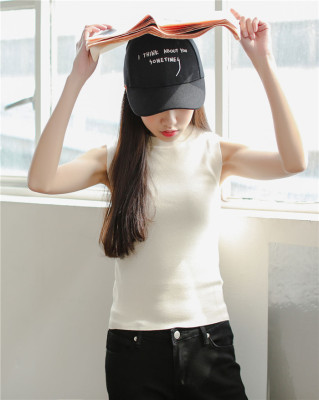 Slim and slim in summer, half high collar, short sleeveless knitted vest, suspender, women's top and bottom coat in autumn
