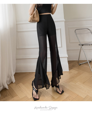 Real shot black chiffon flared pants women's summer thin high waist slim versatile drop down casual wide leg pants