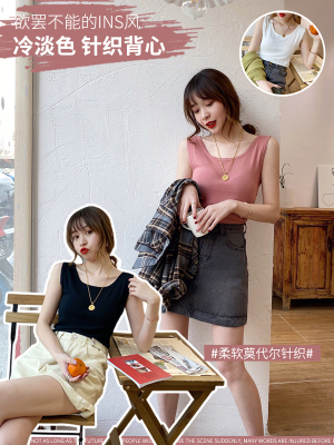 Korean summer ice silk knitted vest women's suspender suit