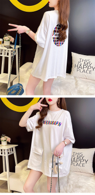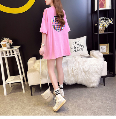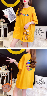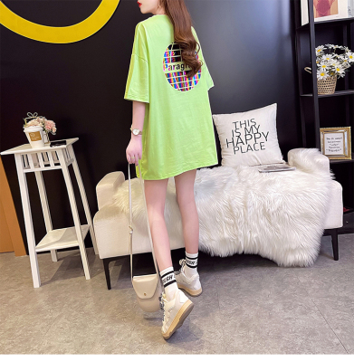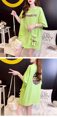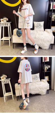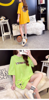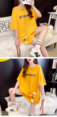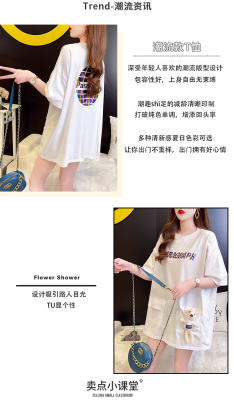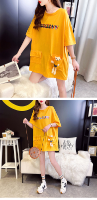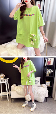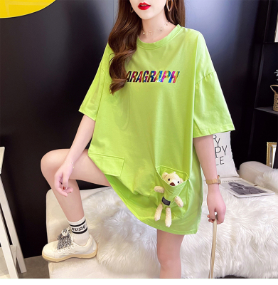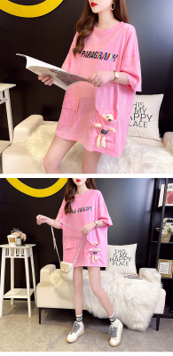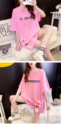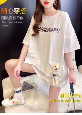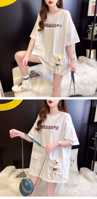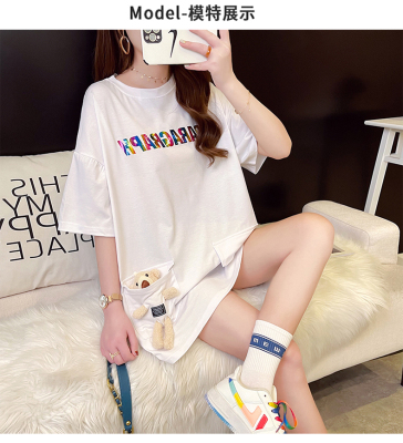 Real shot cotton net red same bear short sleeve T-shirt women's summer new round neck middle length student top large women's dress