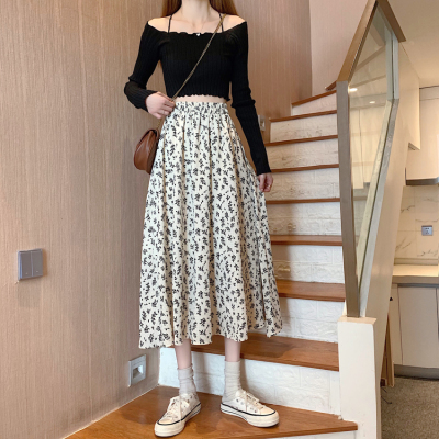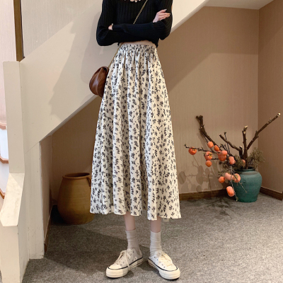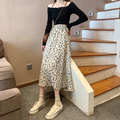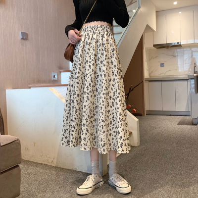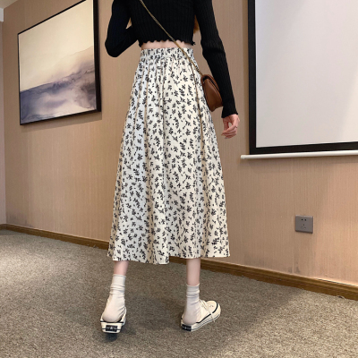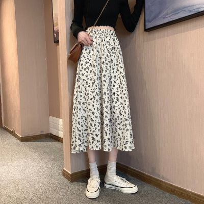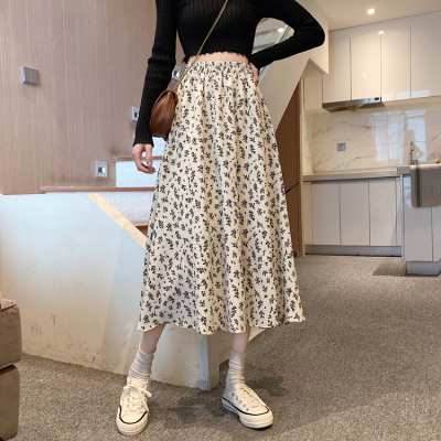 Floral skirt spring and autumn summer skirt new mid length skirt Chiffon high waist skirt