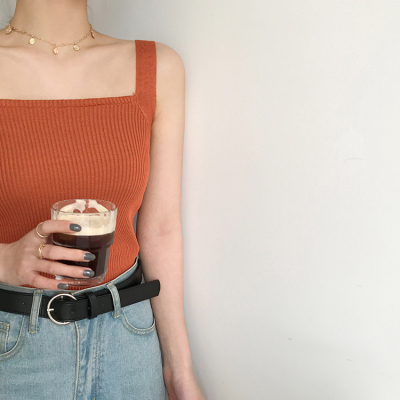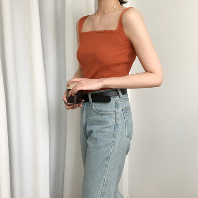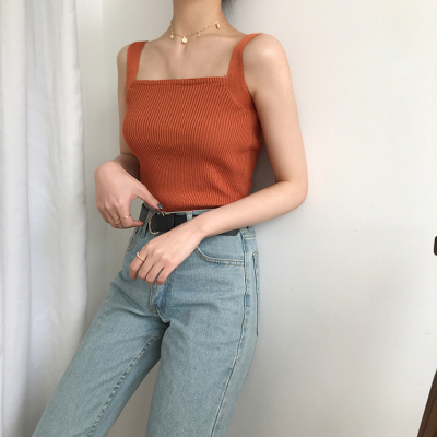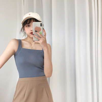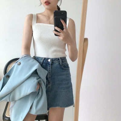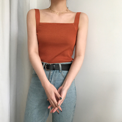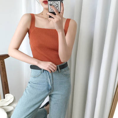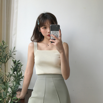 Elastic knitted waistcoat with sleeveless suspender for women's new summer Camisole, slim and slim