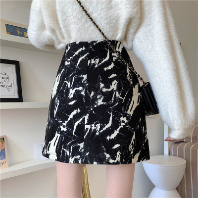 Official figure 100% fiber short short short high waist design A-line buttock skirt for women