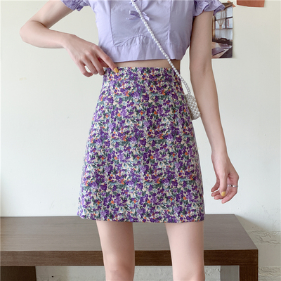 Large size fat mm floral skirt for women's 2021 summer new versatile student high waist slim ins buttock A-line short skirt