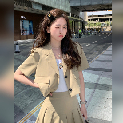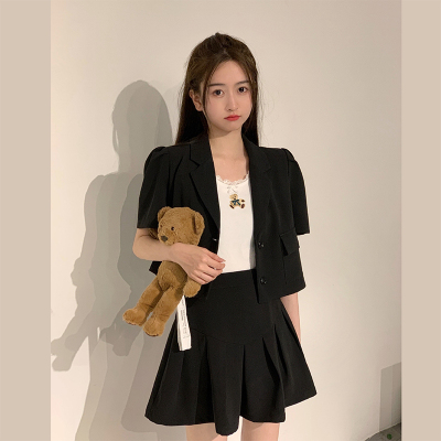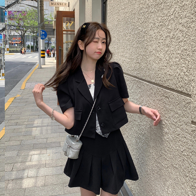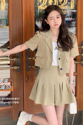 Leisure and Fashion College wind age reduction fried Street suit women's summer thin small pleated skirt two piece set