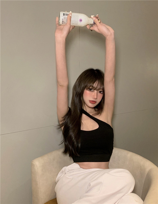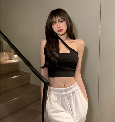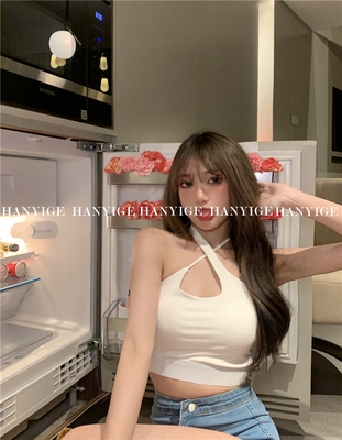 Real price real shooting fans want to tempt ~ Sexy hanging neck open navel vest short tight design sense sling top